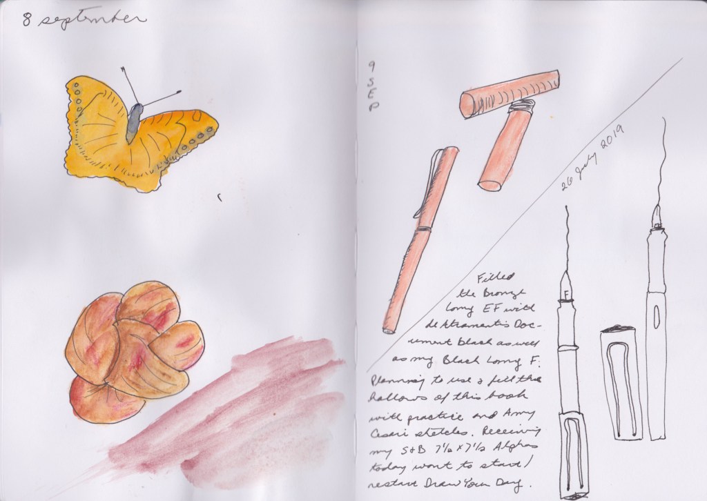 Since my intention was a daily sketchbook, and I wasn’t keeping up with that, I left blank pages on the idea that I would “catch-up” later. I still tend to do that. I rarely catch-up! So in April 2019 I decided to just go back in and start sketching in those blank pages.
