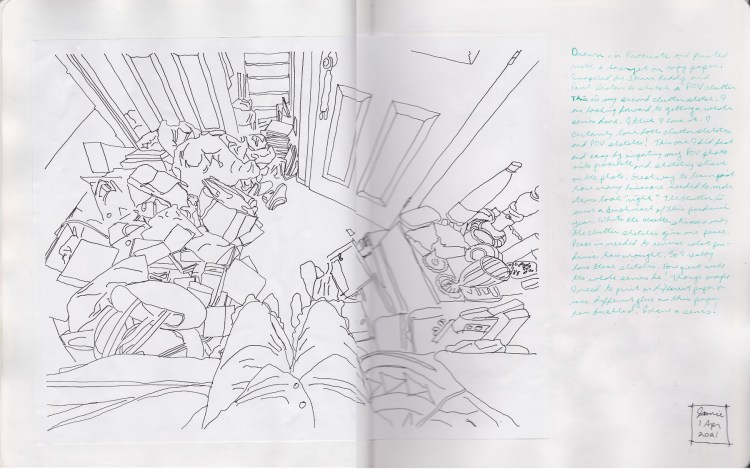 My second clutter sketch, and my first sketch using the POV method. Inspired by Stephen Reddy and Paul Heston for this one. I did sketch over a photograph on my iPad in Procreate in order to teach myself what kind of lines and drawing is needed to achieve this. I am happy with my efforts, and I refuse to consider it cheating. It captured the essence of the times so well, I can only love it.