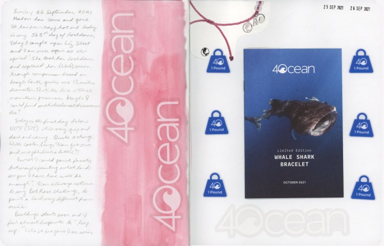 Additionally, I used the same date stamp and weather temperature as a unifying marker through the pages. I probably could have done more with headings or text, maybe even a color block with the clothes, though I do like the airy open white space I have. It is a nice contrast to the fully painted landscape pages.