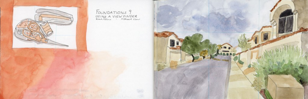 Pen tests, and Foundations exercises, and then another walk at Stonecreek. The Stonecreek page is an exploration of media. I used the Albrect Durer watercolor pencils for the birds, but then got curious how the Inktense would look next to it, so I extended the background using the Inktense. Then I decided to paint my usual Stonecreek Pond in Gansai Tambi. Love what the water effects did in the pond water. I did this at home, from a photo, as the Gansai Tambi are not easily transportable.