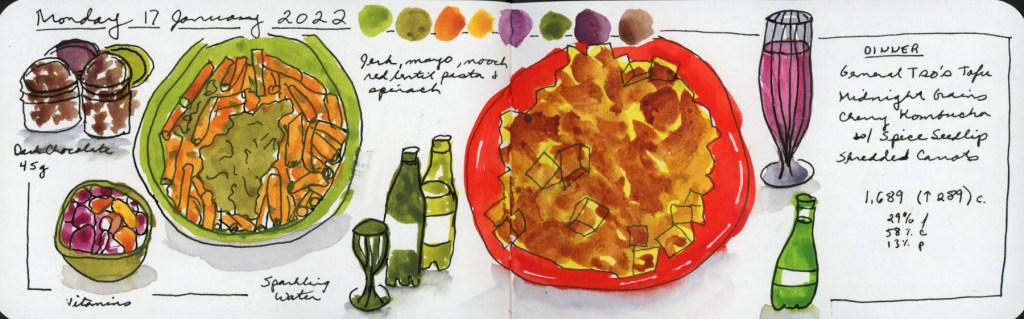 It will also be nice to document the food, as food prices are going up again. Also, I have always found it very useful to have the visual record of what I eat, as I have so many allergies, and auto-immune issues with food. It’s a big challenge, though, and I’ll admit to some trepidation about even sticking to it for a week! Ha! But hey, a week of daily sketching will no doubt feel great, and I’ll get the sketching daily practice and habit going again. Which is the ultimate goal.