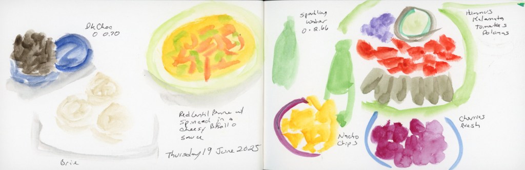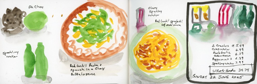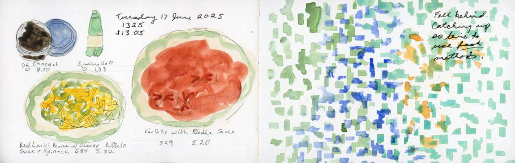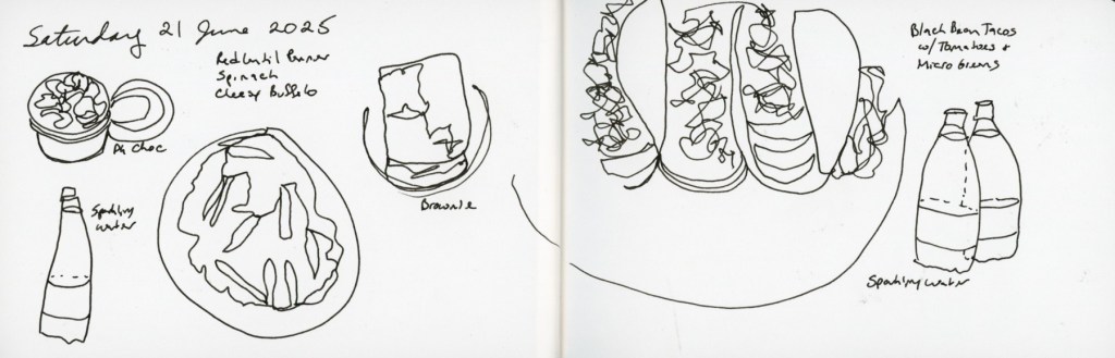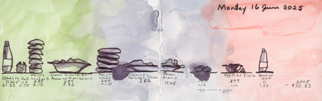 Food sketches for the week. Since the subject matter is so repetitive, I’m working on varying the methods.