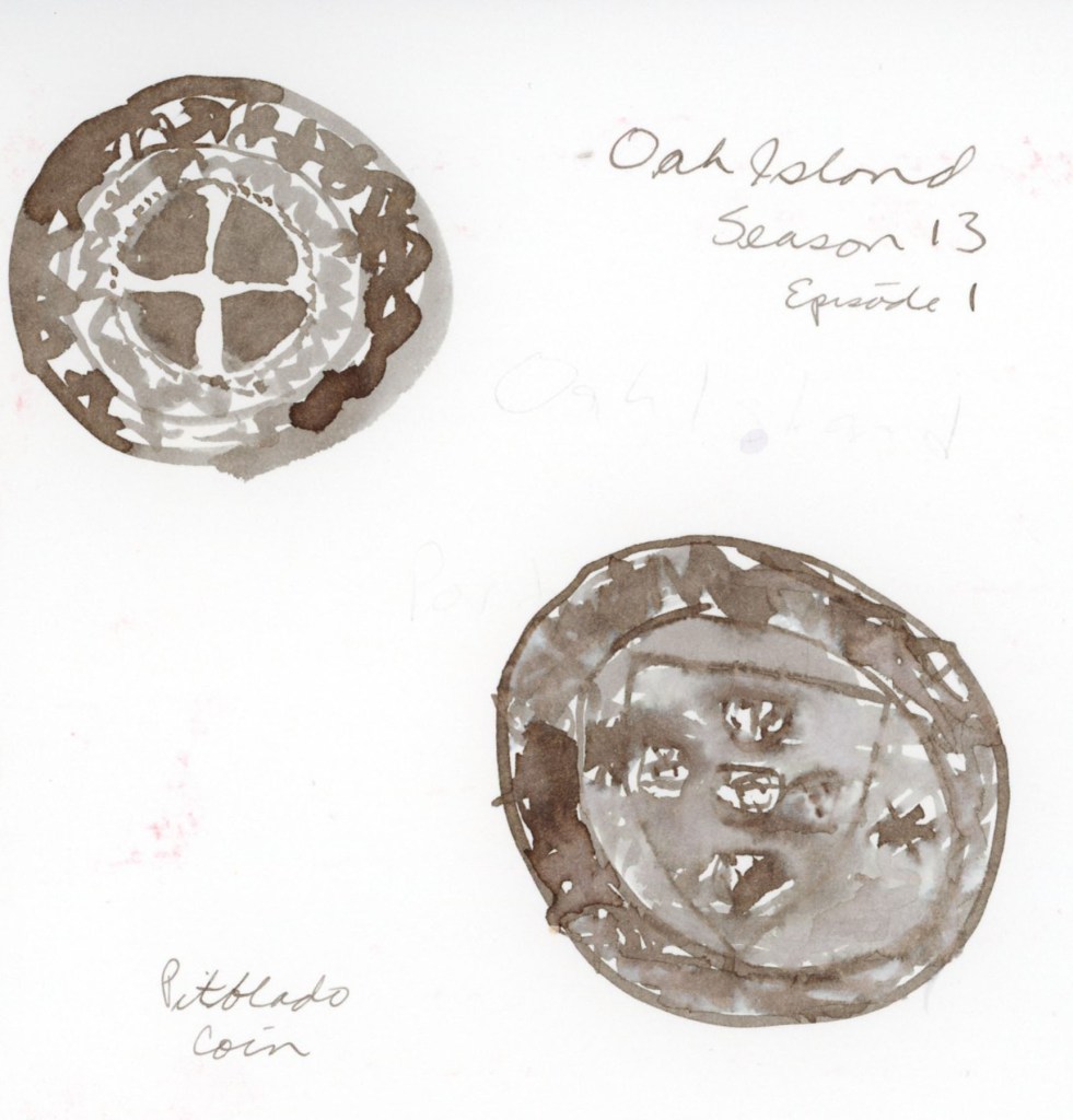 The other procreate traced Christmas village buildings, and the Portuguese coin I sketched in ink, using Ferris Wheel Press ink Leadcast Letters.